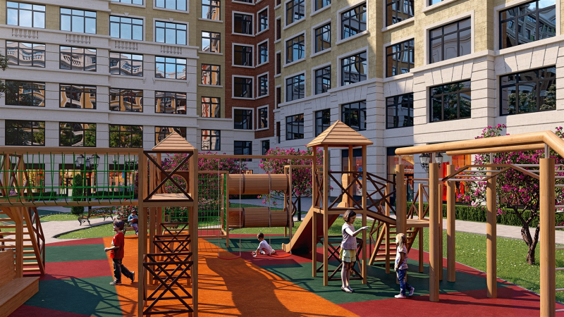 Внутренний двор будет оборудован детской игровой и спортивной площадкой. В шаговой доступности несколько школ и детских садов.